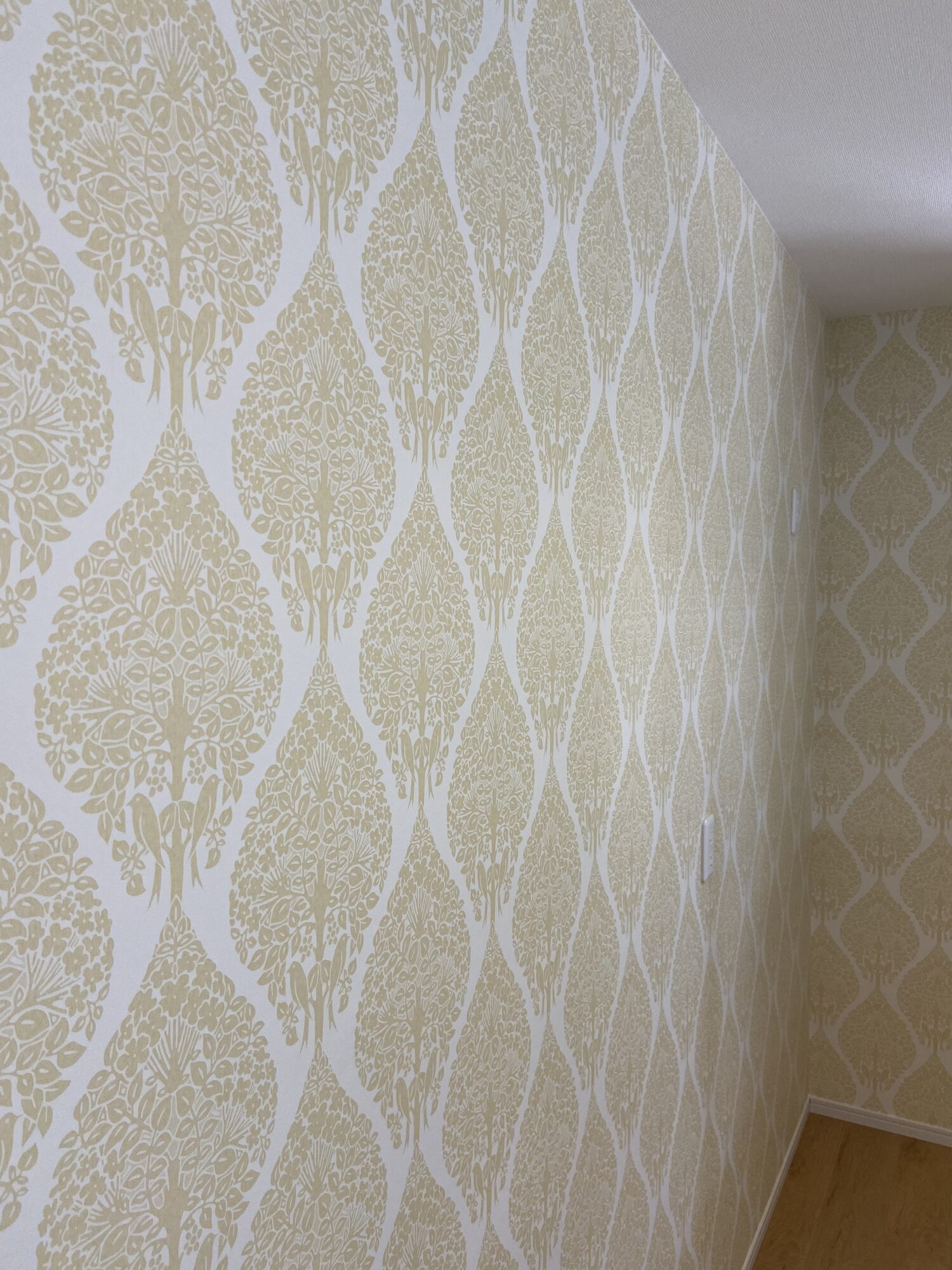 施工時には、お客様も一緒に元々の白い壁紙をめくる体験をして頂き、壁紙の柄を合わせて貼る際も横で見て下さり、「すごいーーー!」と、お褒めの言葉を頂きました(´▽`*)