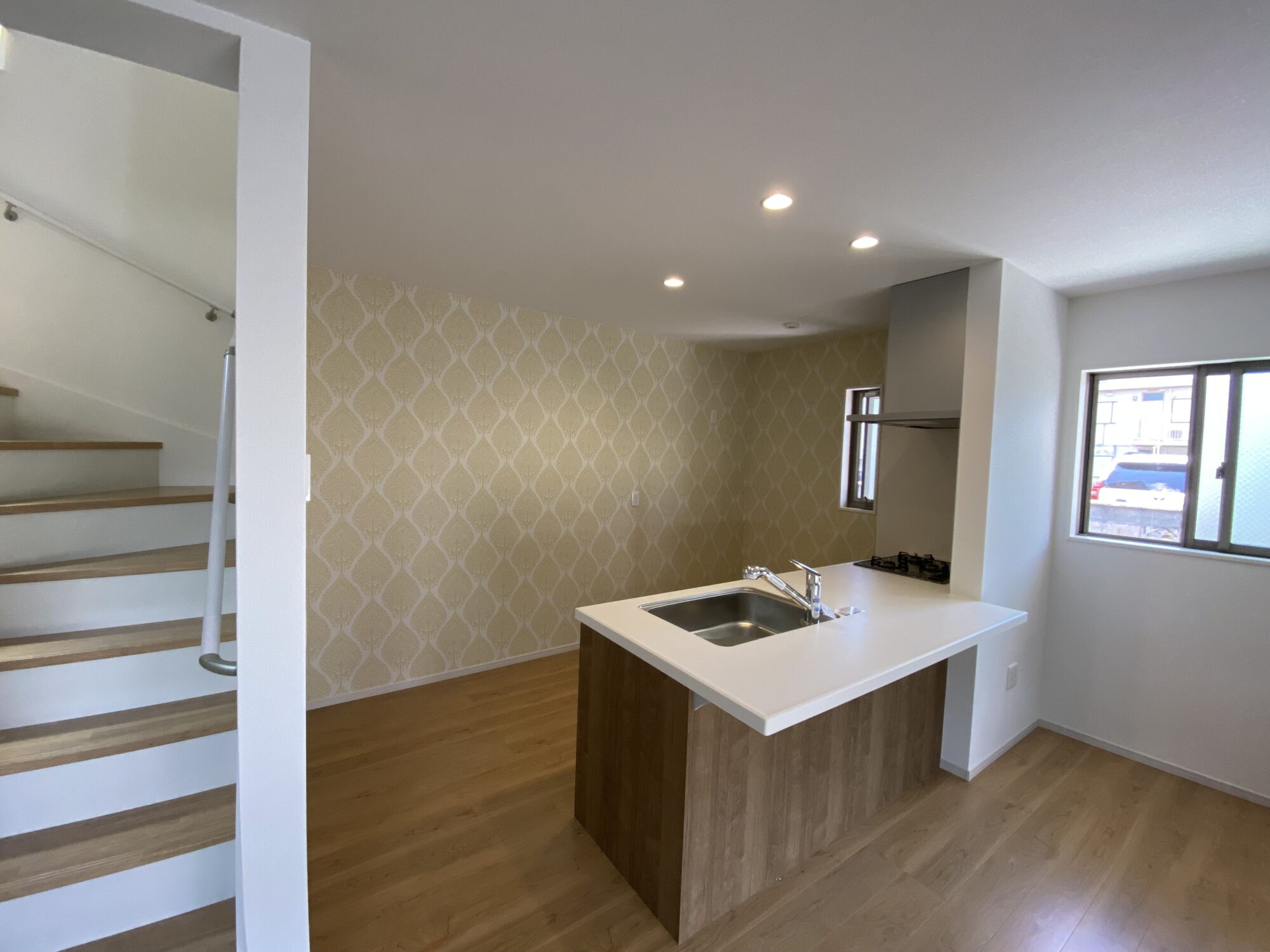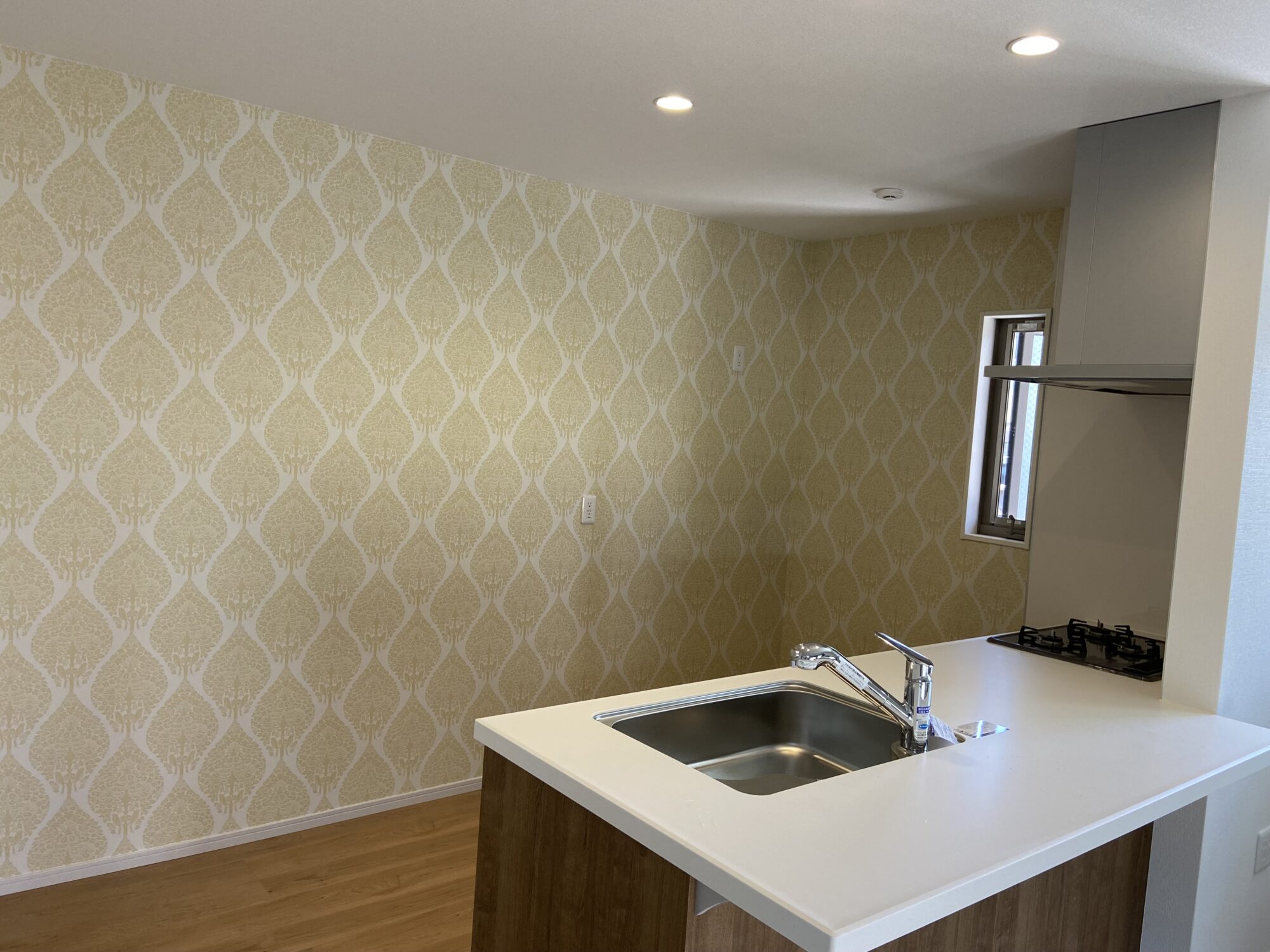N様邸 キッチン、リビング、トイレの一面アクセントクロス